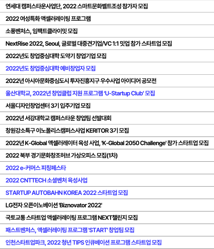 | 05월 04주차 컨설턴트가 추천하는 창업 지원사업 및 스타트업 관련 행사 (0) | 2022.05.23 |