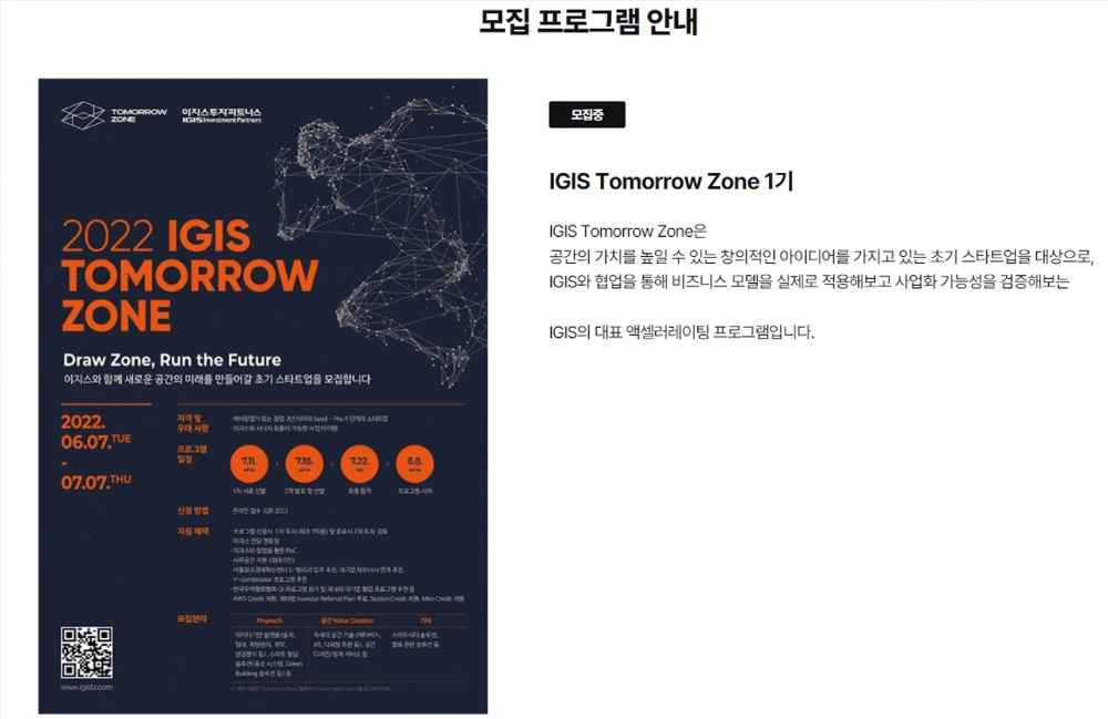 1. 이지스 투자 파트너스 투머로우 zone 1기
