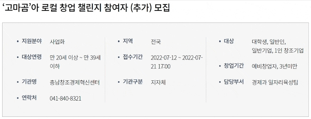 4. 충남창조경제혁신센터 '고마곰'아 창업 챌린지 참여자 (추가)모집