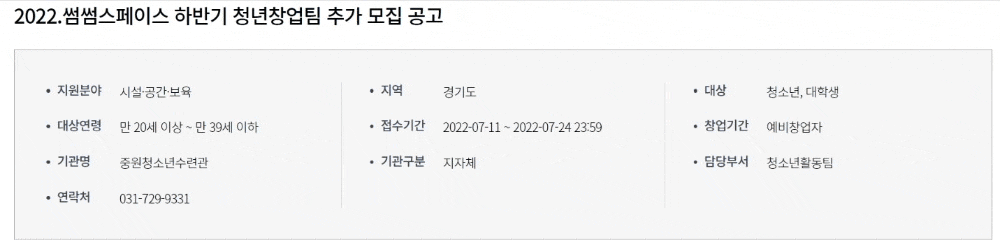 9. 성남시 청소년 수련관 썸썸스페이스 청년창업팀 모집