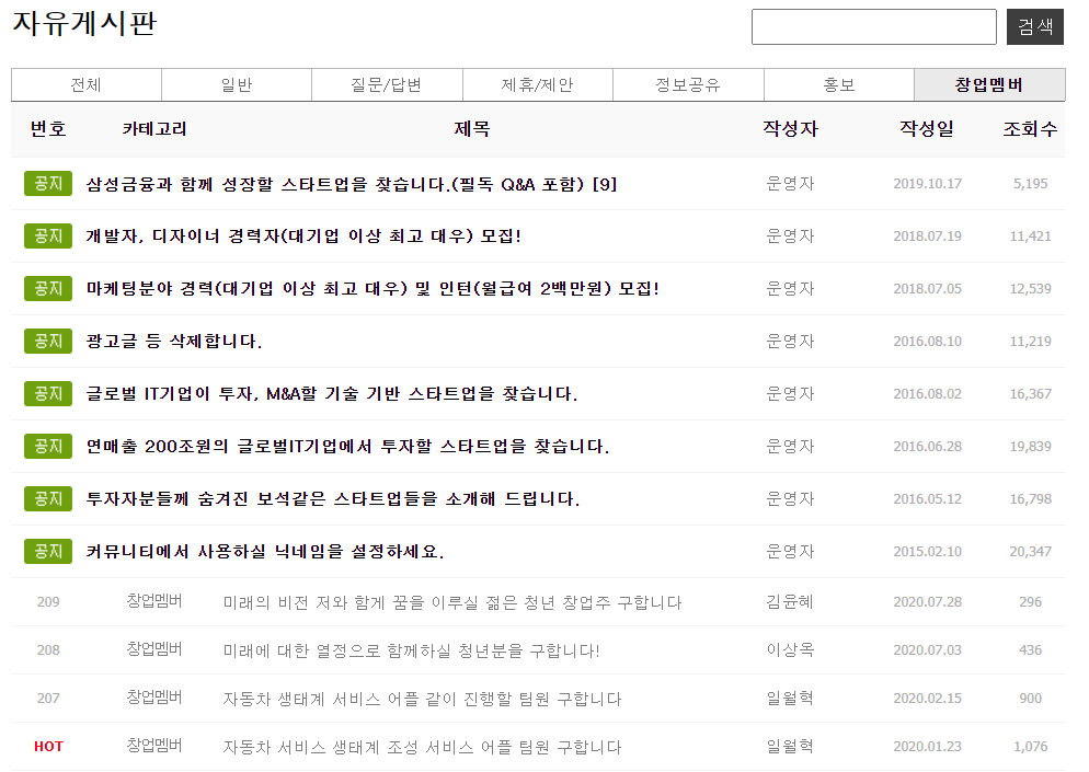 스타트업 팀빌딩 사이트입니다. 스타트업 하는 사람이라면 한 번씩은 들어가본 사이트겠지만...