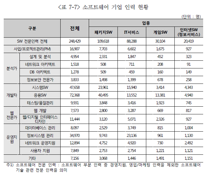 • SW개발자 : 시스템SW 개발, 응용SW 개발, 테스팅/품질관리