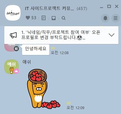 현재 네이버 카페, 단톡방을 운영한게 최근에 런칭한 사이드프로젝트 플랫폼들 보다 규모가 훨씬 큼!!! 이 정도면 국내 최대 규모 사이드프로젝트 플랫폼이라고 해도 괜찮을꺼 같음