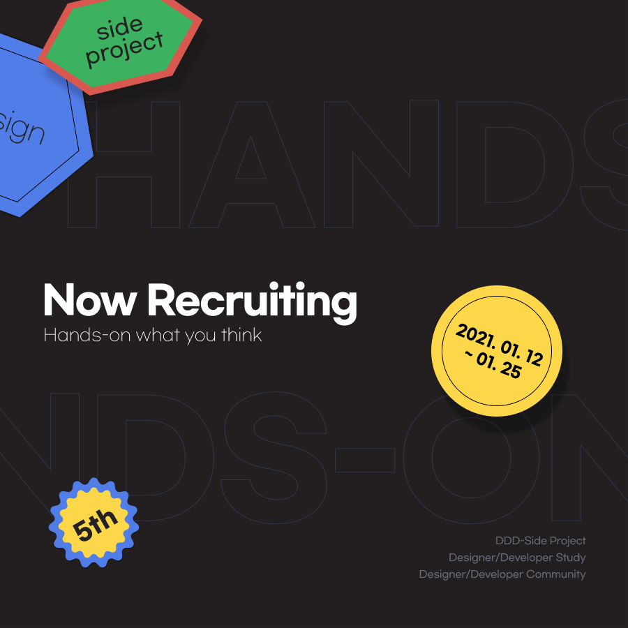 DDD는 개발자와 디자이너가 함께 사이드프로젝트를 진행하며 서로 파트의 역할에 대한 이해를 넓히고 친목을 쌓을 수 있는 기회를 제공합니다.