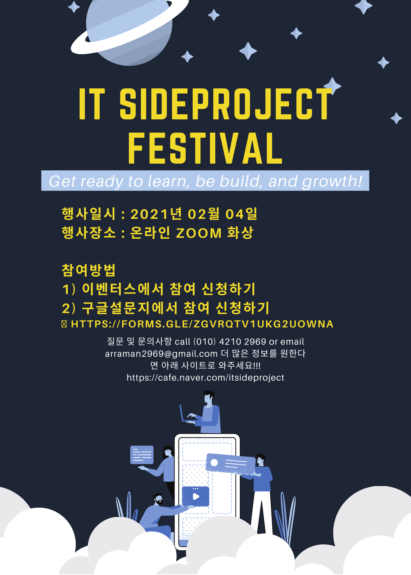 1) IT사이드프로젝트 네이버 카페 : Web / App 분야 IT기획자, 디자이너, 개발자 우대