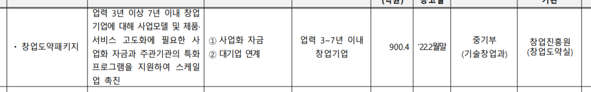 해당 자료의 출처는 K Startup의 2022년도 창업지원사업 통합공고이다.
