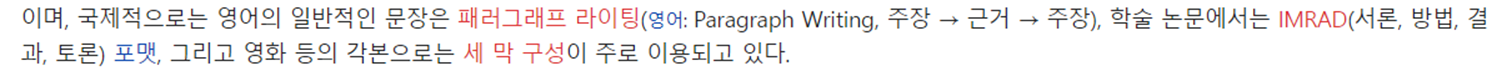 이 중 페러그래프 라이팅은 (주장-> 근거)의 단순한 구조 때문에